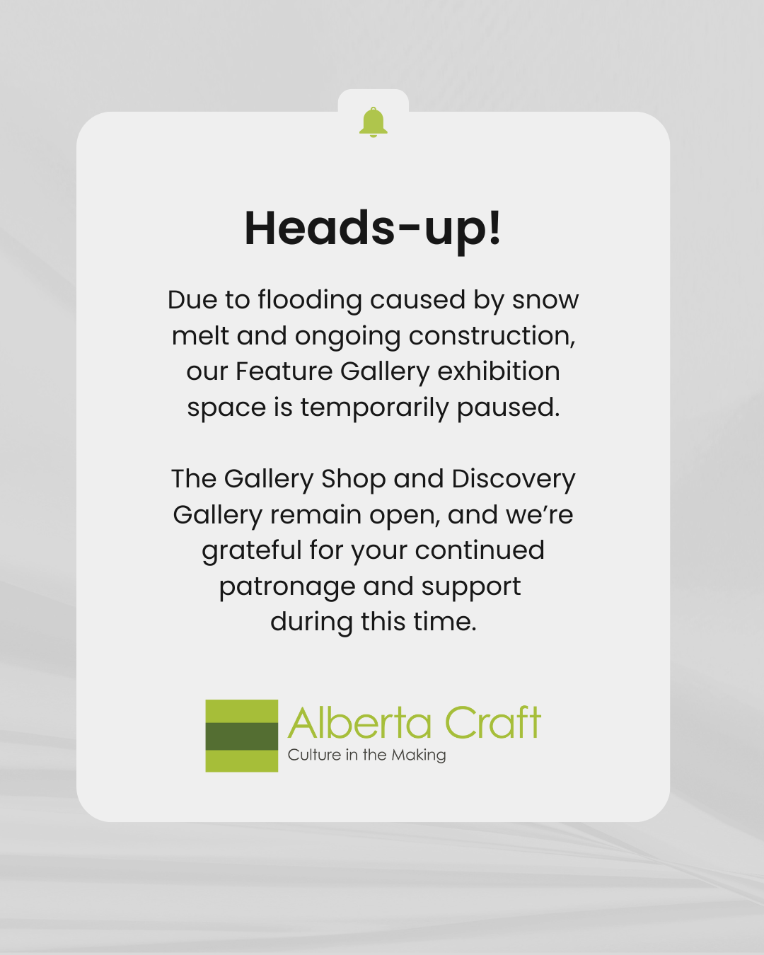 We have been operating since 1980, and currently run two Alberta Craft Gallery & Shop locations in Edmonton and Calgary. Both locations offer free access to exhibitions, social enterprise retail, and online programming including artists talks and professional development opportunities for Alberta Craft artists.