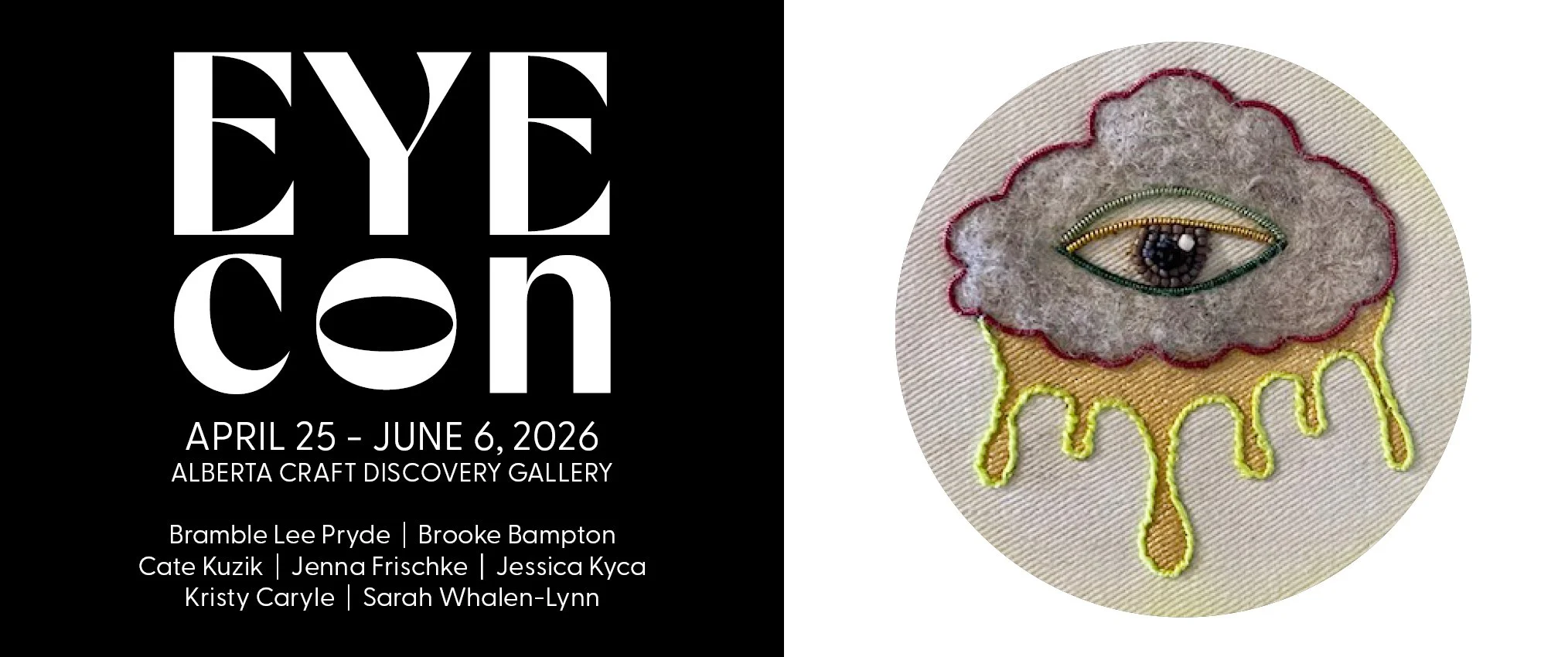 EYEcon brings together Alberta artists working in contemporary craft to explore the eye as both form and function. Through glass eyes, carved surfaces, woven fibres, metals, and repurposed materials, the exhibition renders vision as something constructed and shaped by technique, repetition, and material choice. Across jewelry, textiles, and sculpture, the eye becomes both witness and ornament—a point of tension between interior and exterior experience. Visitors are invited to look closely, reflecting on what it means to observe and be observed, and how attention is shaped by what we make and how we see.